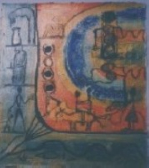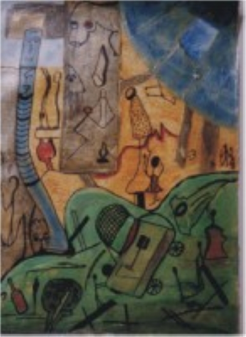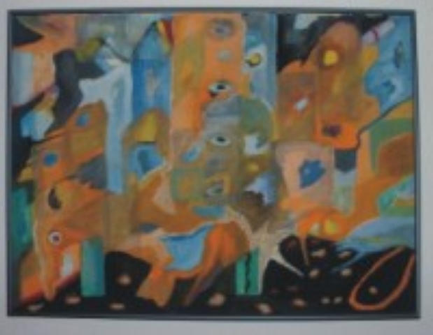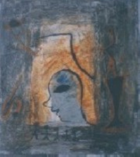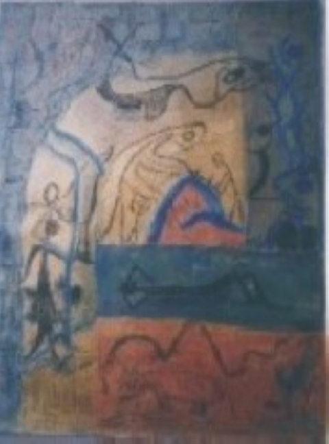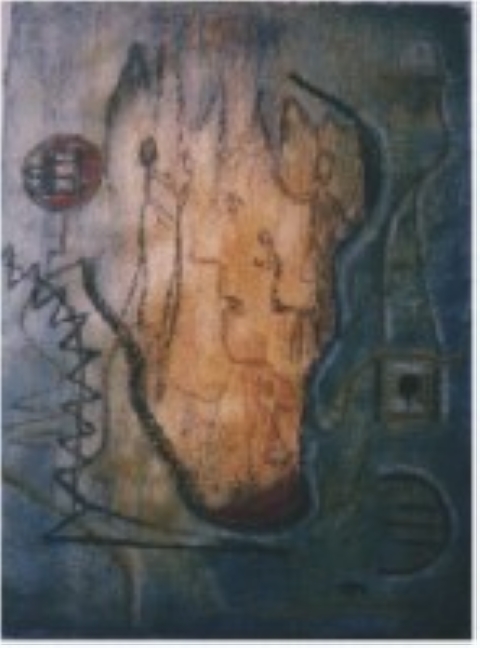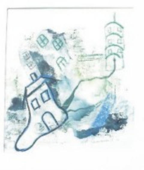 Technique:Emulsion paint by using sawdust to get a pitted surface on paper